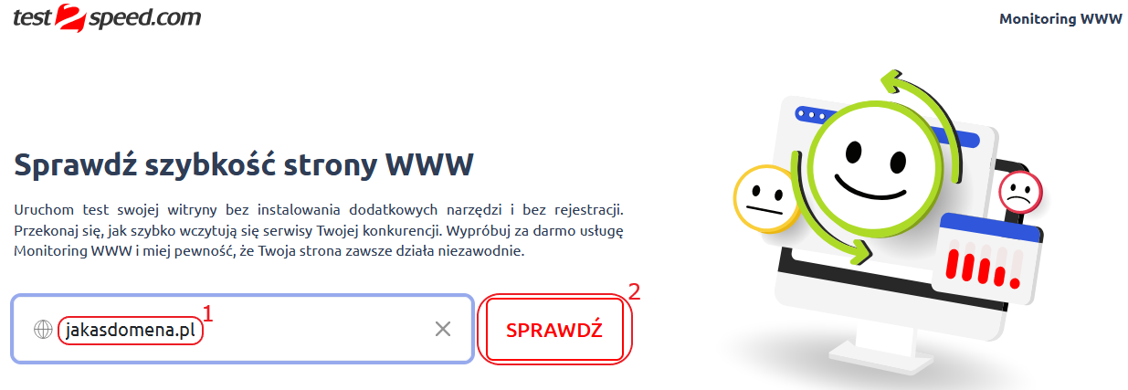 Dla użytkowników, którzy chcą stale monitorować szybkość swojej witryny oraz otrzymywać powiadomienia w przypadku, gdy jest ona niedostępna, została przygotowana usługa Monitoring test2speed.com. Aktywacja usługi nie wymaga specjalistycznej wiedzy technicznej i po wyborze pakietu sprowadza się tylko do podania adresu badanej strony internetowej (Sprawdź: Zamówienie i aktywacja usługi Monitoring WWW).
