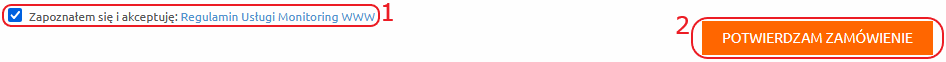 Zapoznaj się z treścią regulaminów usługi i zaakceptuj ich warunki (1), a następnie kliknij POTWIERDZAM ZAMÓWIENIE (2).